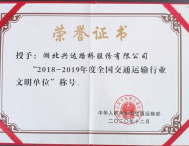 企业资质/ ENTERPRISE QUALIFICATION 交通动输企业安全生产标准化建设二级达标企业 2013年度优秀劳务班组 中国施工企业管理协会团体会员 2017-2019年度湖北省文明单位 2018-2019年度全国交通运输行业文明单位 2019年度咸宁市建筑行业综合实力十强 <123456>