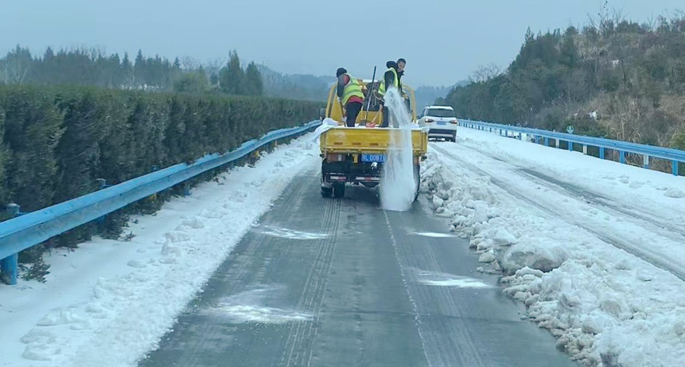 20日大雪到来前,公路养护事业部50余人,近20台机械和车辆紧急出动,在完成相应物资装运准备后,于21日凌晨和晚间,先后开赴杭瑞和京港澳高速进行清雪除冰作业。为有效防止路面积雪结冰,全体人员不畏严寒,顶风冒雪,发扬连续作战精神,通过铲车在前铲雪除冰,机械、车辆和人员配合在后反复撒布融雪剂的方式对主车道积雪进行清除。经过百余小时的连续奋战,往返清除积雪路段总计150余公里,撒布融雪剂400余吨。