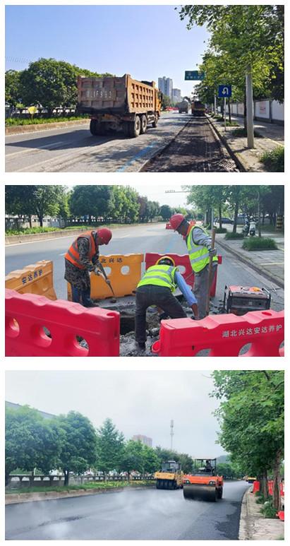 在青龙路,施工人员昼夜加班加点对破损路段进行路面清扫、基础处理、井盖提升、铣刨、沥青摊铺等施工作业,5月底全面完成施工任务,进一步提升了市民出行环境。同时,嘉鱼县2021年度农村公路抽查次差路段养护工程(第二期)施工现场旧路面挖除、路面混凝土浇筑等施工作业也在紧张有序地推进,争取6月底完成10条道路的路基路面和交安工程施工任务。