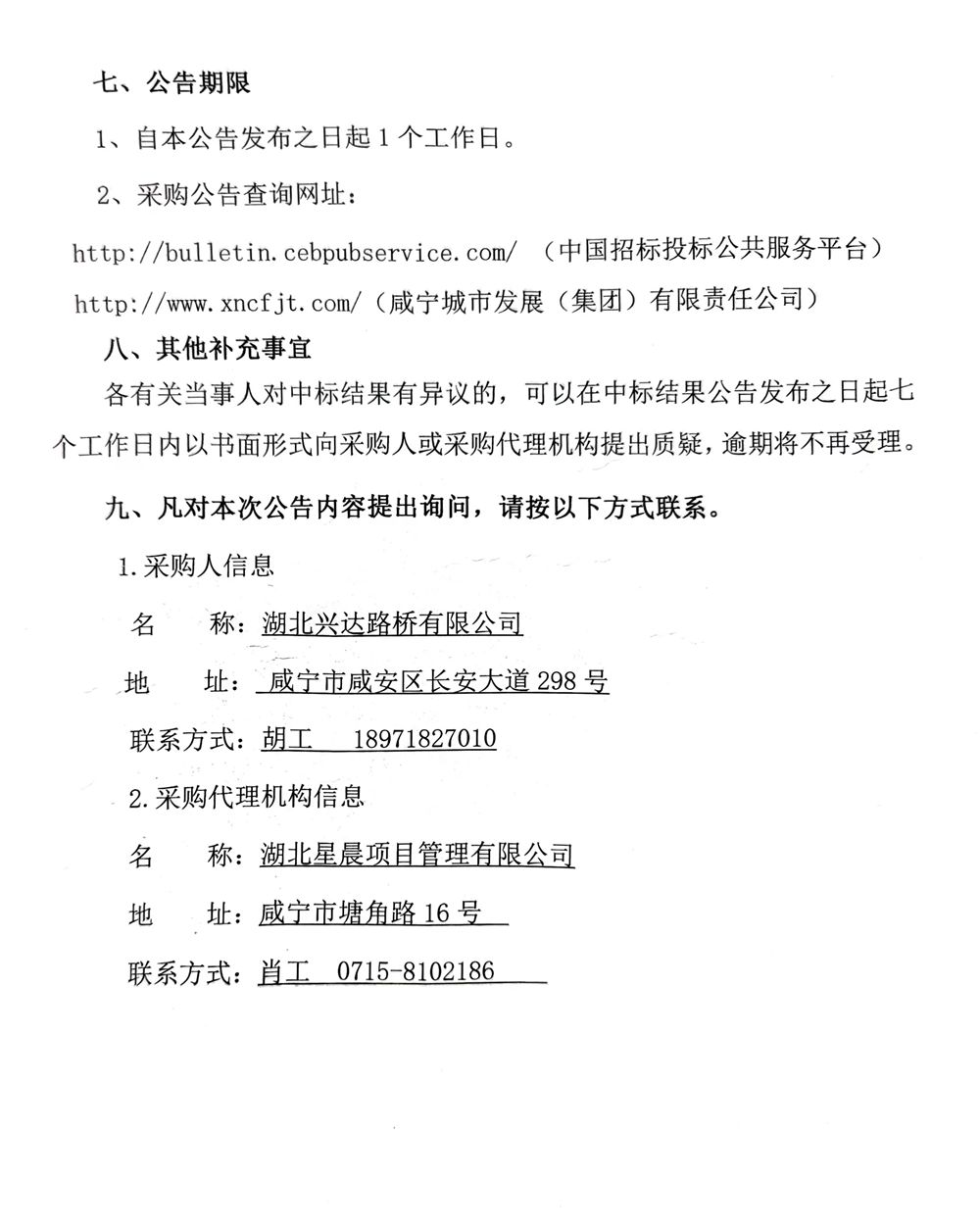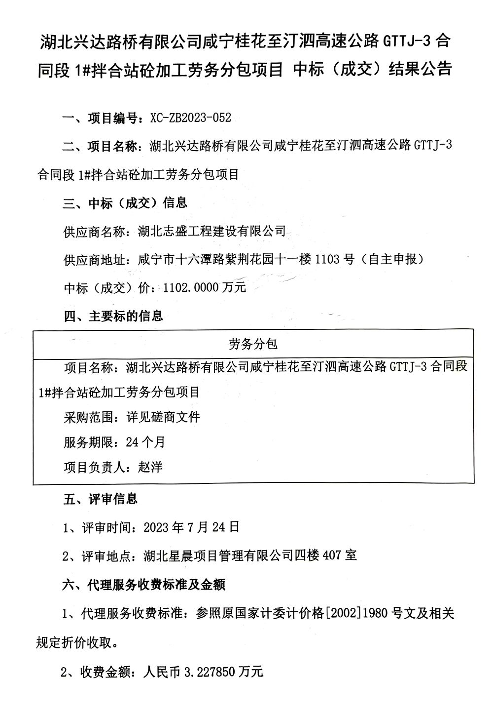 湖北兴达路桥有限公司咸宁桂花至汀泗高速公路GTTJ-3合同段1#拌合站砼加工劳务分包项目 中标(成交)结果公告 发布时间: 2023-08-04 浏览次数: 0 作者: 兴达路桥 上一篇: 湖北兴达路桥有限公司(交投公司)事业部副经理竞聘公告 下一篇: 湖北兴达路桥有限公司南外环1#拌合站钢结构专业分包及混凝土采购遴选公告